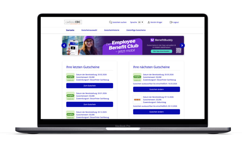 Mit dem cadooz Employee Benefit Club (EBC) verwaltest und verteilst du Mitarbeitergutscheine komplett digital, effizient, sicher und steuerkonform.